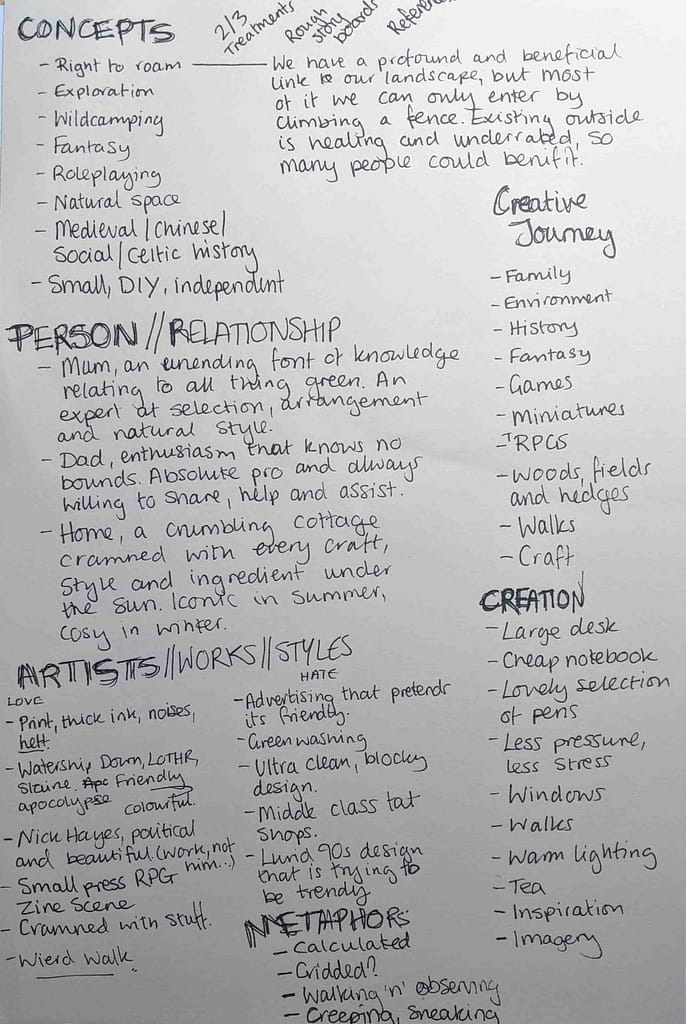 We were encouraged to test our ideas by applying different genres to them, as well as potentially exploring how they could be abstracted. I was interested in making type move, possibly linking that with the process of walking and the various ways adventure has inspired my ideas. Other ideas included delving into a hedgerow and finding various critters within, or a monster being assembled from my varied interests.