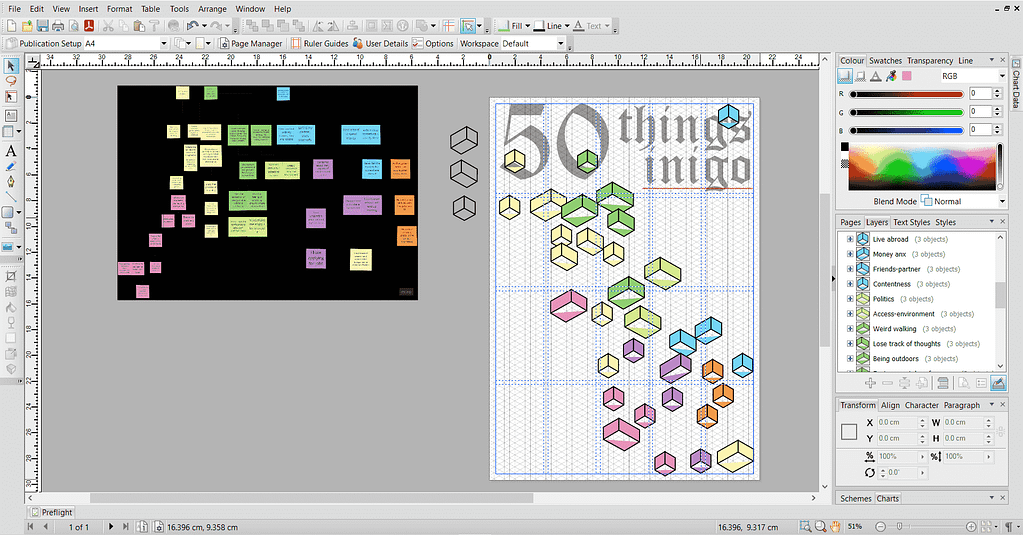 One of my biggest challenges has been tackling the somewhat unusual ‘things’ that initially set for myself. They range from everything to anxieties about creative work and my ambitions as a Right to Roam activist. This creates an exciting variety of information to work with, but also a large amount of potential categories, looks and outcomes.